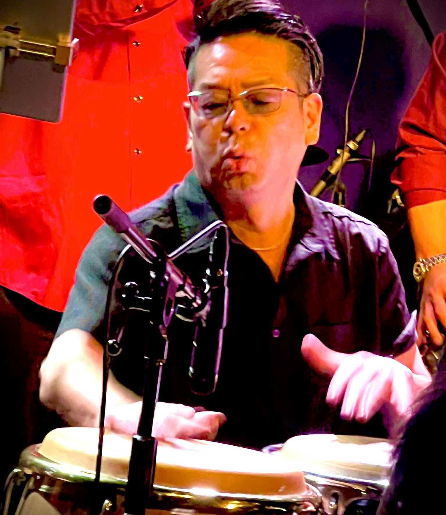 異色なコンガ奏者。