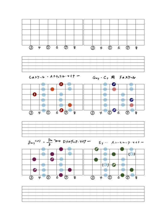 ■D7・・・Gハーモニック・マイナー(Gメロディック・マイナーもアリ)