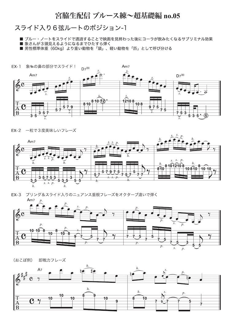 EX-3…プリング&スライド入りのニュアンス重視フレーズをオクターブ違いで弾く
