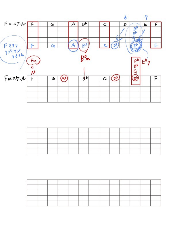 ■ 多くの人が同主調と間違えてFm△7時にE♭音を弾いてしまっている
