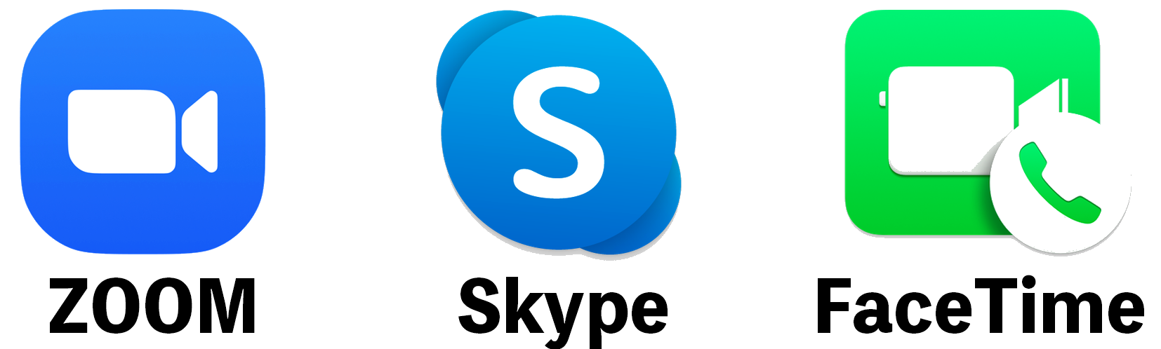 下記のアプリケーションを介してレッスンを実施しています。タイムラグ等の兼ね合いから、現時点ではzoomのみ受け付けています。いずれも無料でPCもしくはスマホにインストール可能です。